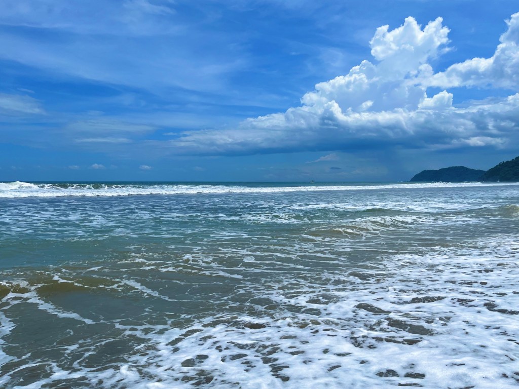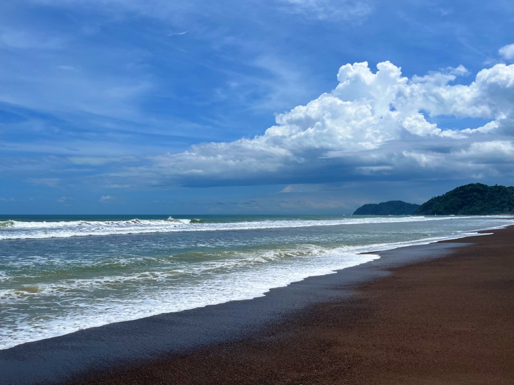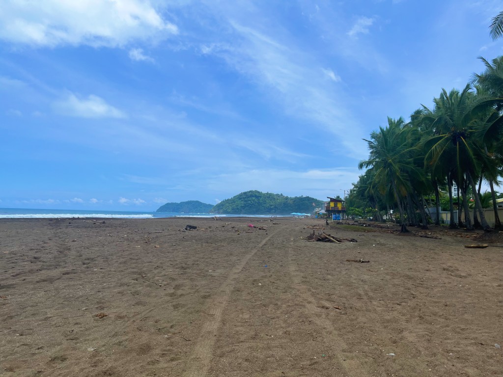 Jacó Beach isn’t the softest white sand you’ll ever see, but it’s got that golden glow and the vibes are vibing. I spent some time walking the shoreline, snapping pics, and watching surfers do their thing.